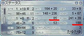 ペア、トリオくらいで行く狩場はほぼ回避も満たしているので完全回避を落としてでも攻撃回数を上げたほうが鷹も飛ぶしいいんだろうなぁ~。