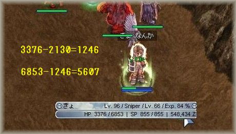 6853(Trs切れてた時のMHP)-1246=5607(パルス被ダメ)