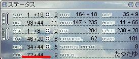 支援さんには余計な手間ですが、グロリアを貰うとLUKが72+44=116になります。