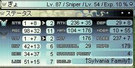 ss撮影時はまだ87/54ですが、このあとjobも上がって87/55に成長です。